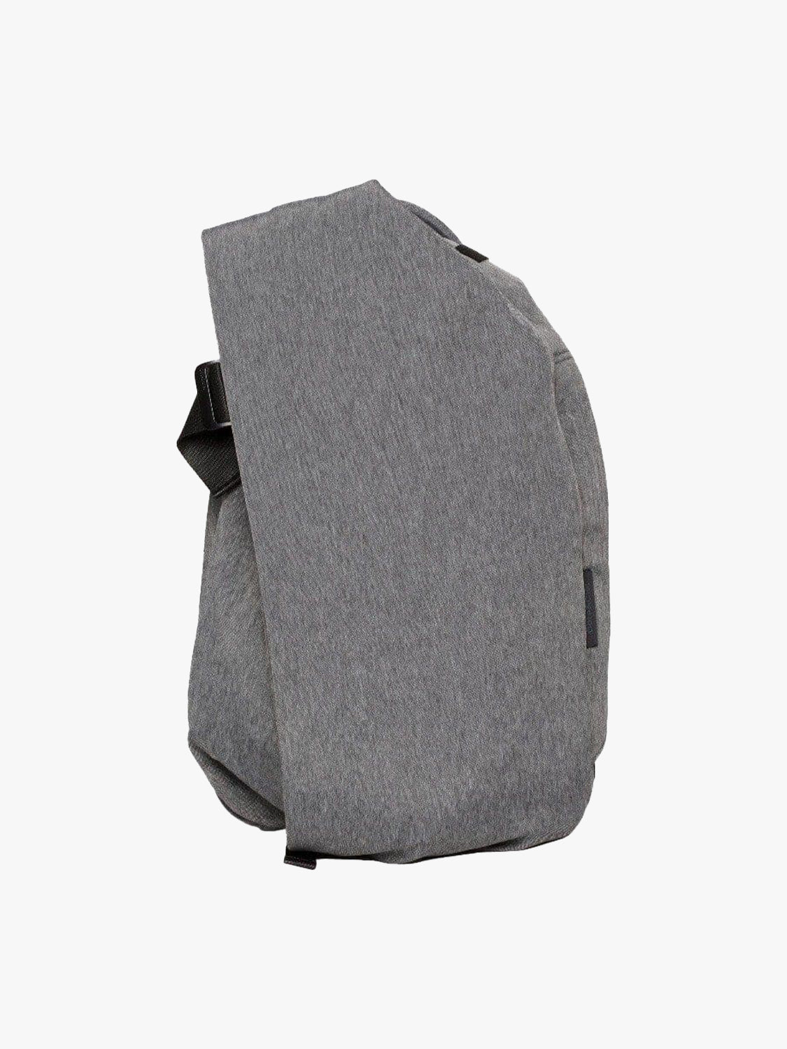 Rygsækkens krop er lavet af en sort mélange EcoYarn - et holdbart stof udviklet gennem bæredygtige processer, suppleret med en diskret grå inderside og sorte metalbeslag.