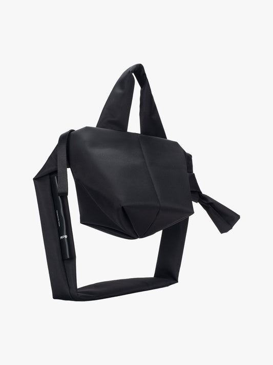 Sleek est un nylon lisse et déperlant qui glisse sur le corps, donnant au sac une structure souple tout en préservant sa forme architecturale.