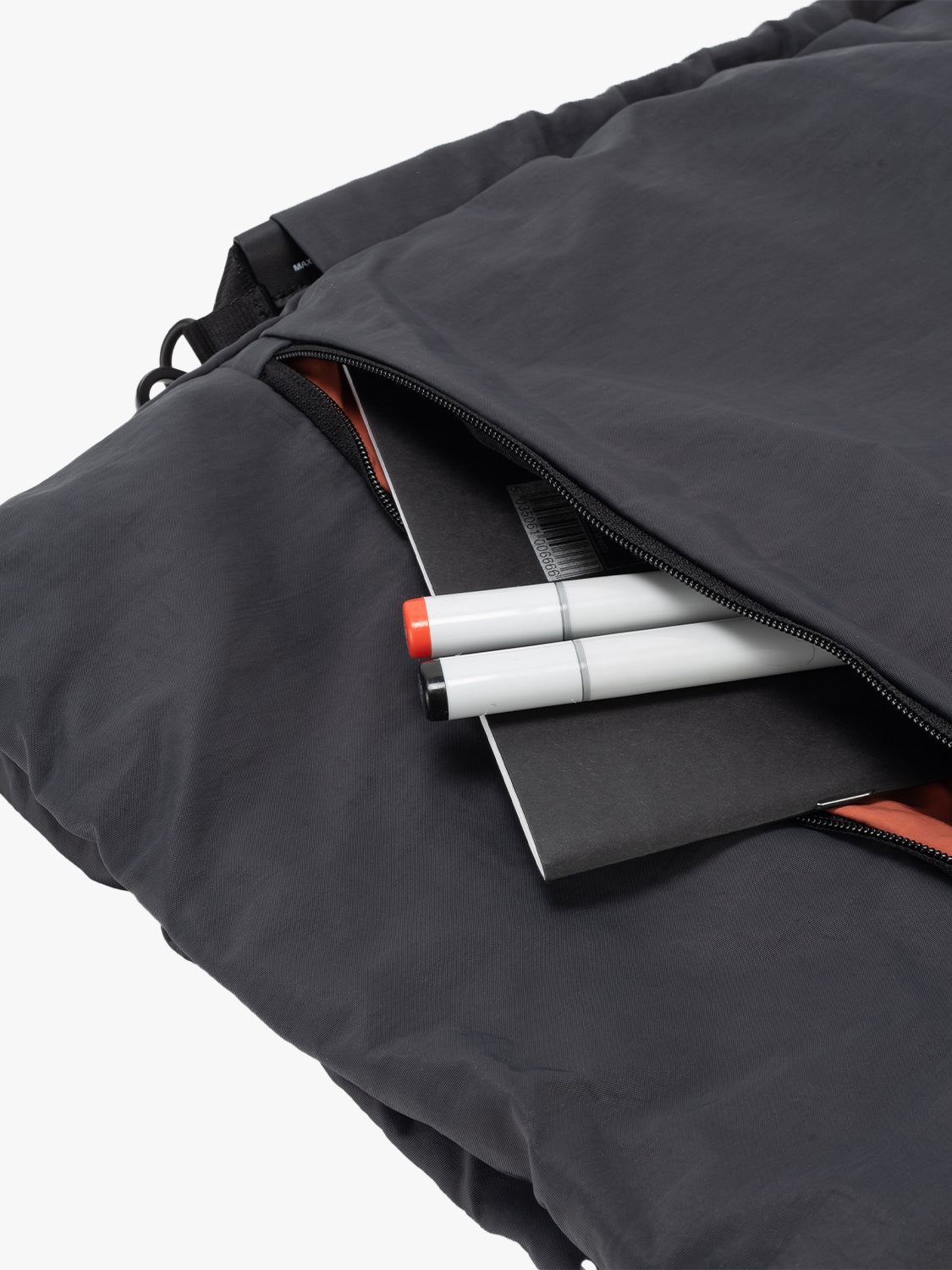 A drawstring closure at the top offers effortless access while maintaining a secure silhouette, and the ADDA strap brings an extra layer of functionality.