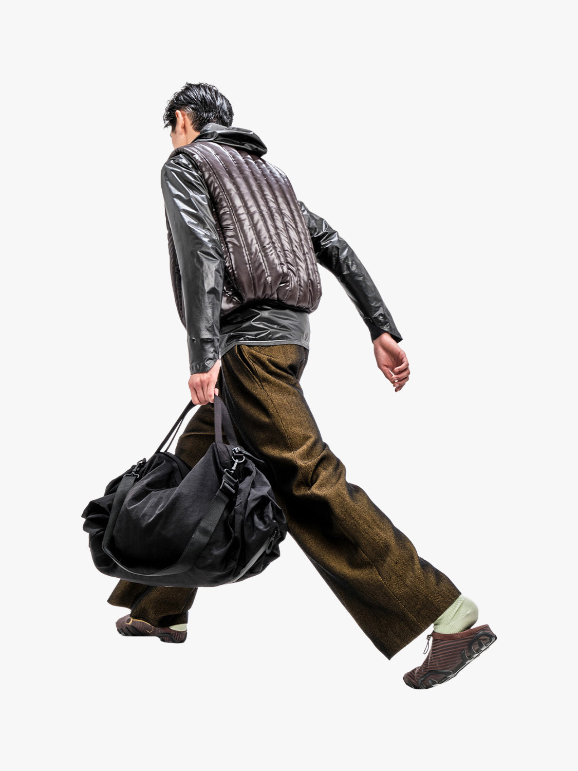 Den OBED är en stor, lätt duffelväska tillverkad av slät nylon. Den kan bäras över axeln med de längre remmarna, som en crossbody när den kombineras med en ADDA, eller som en ryggsäck när den kombineras med två ADDAs (säljs separat).