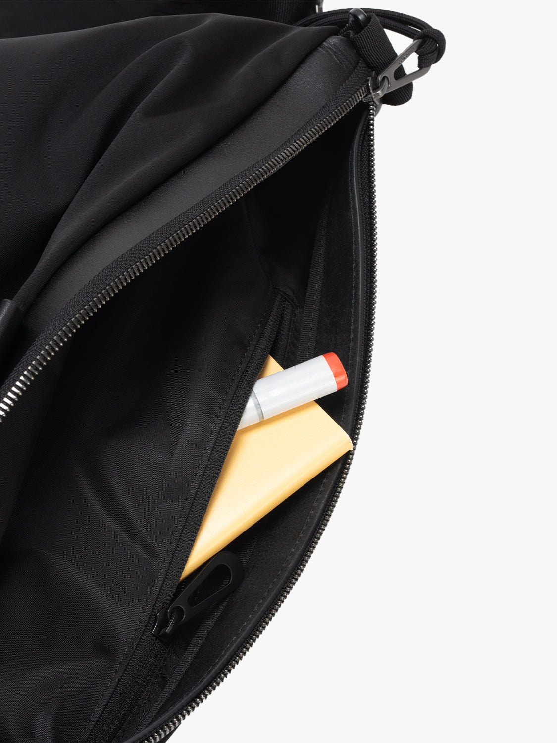 Kompletterad med matt pistolmetallbeslag och en ADDA axelrem med dragkedja som också kan bäras separat.